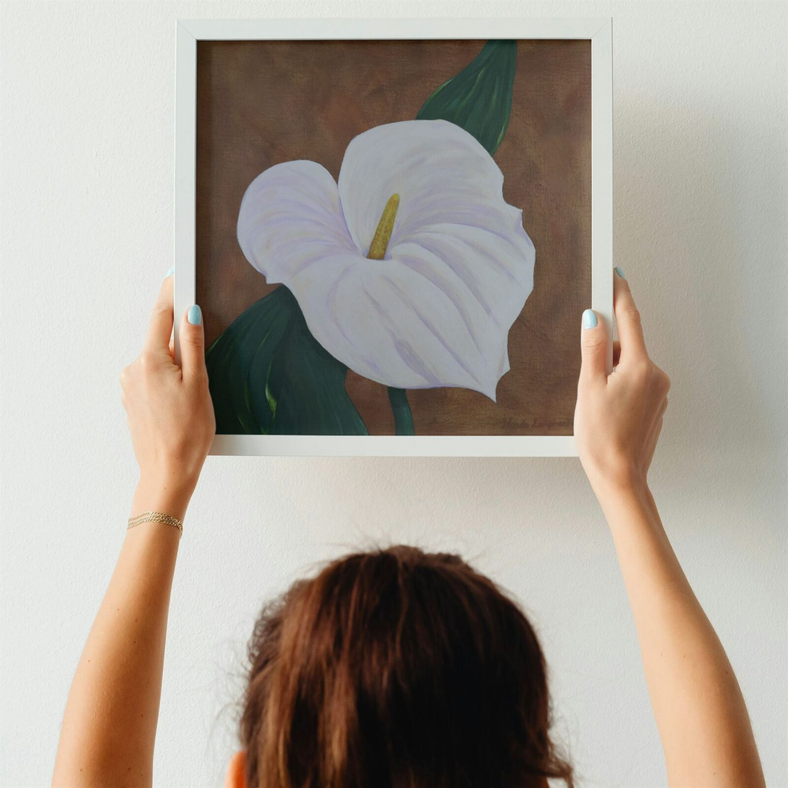 “Arum Lily” evokes a profound sense of natural beauty and calm, making it a versatile addition to various interior settings. It would particularly complement plain white or beige walls in any home or office, and is ideally suited for spaces embracing natural tones or pastel colors. As a one-of-a-kind original artwork by Nanda, “Arum Lily” offers timeless elegance and a touch of botanical grace to your environment.