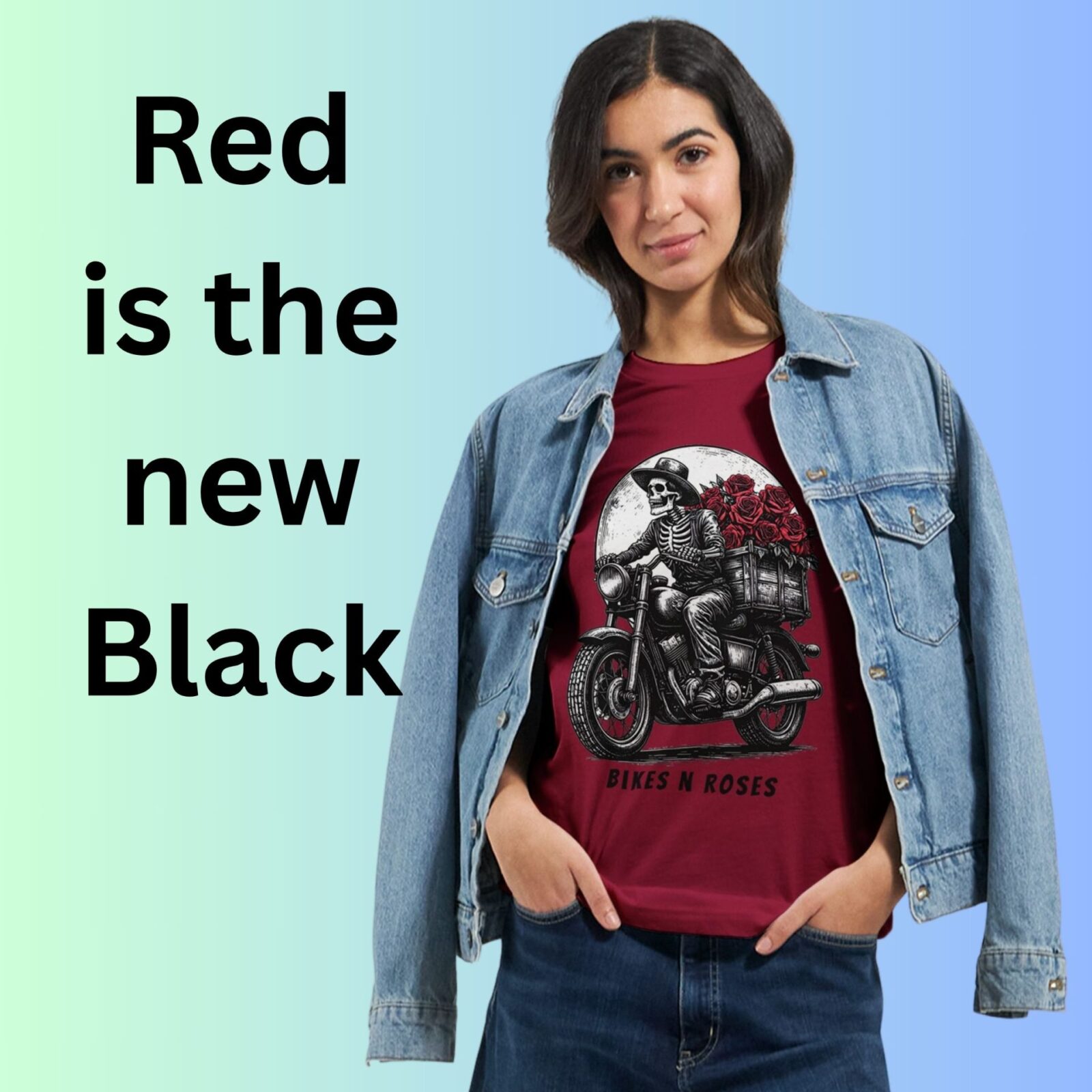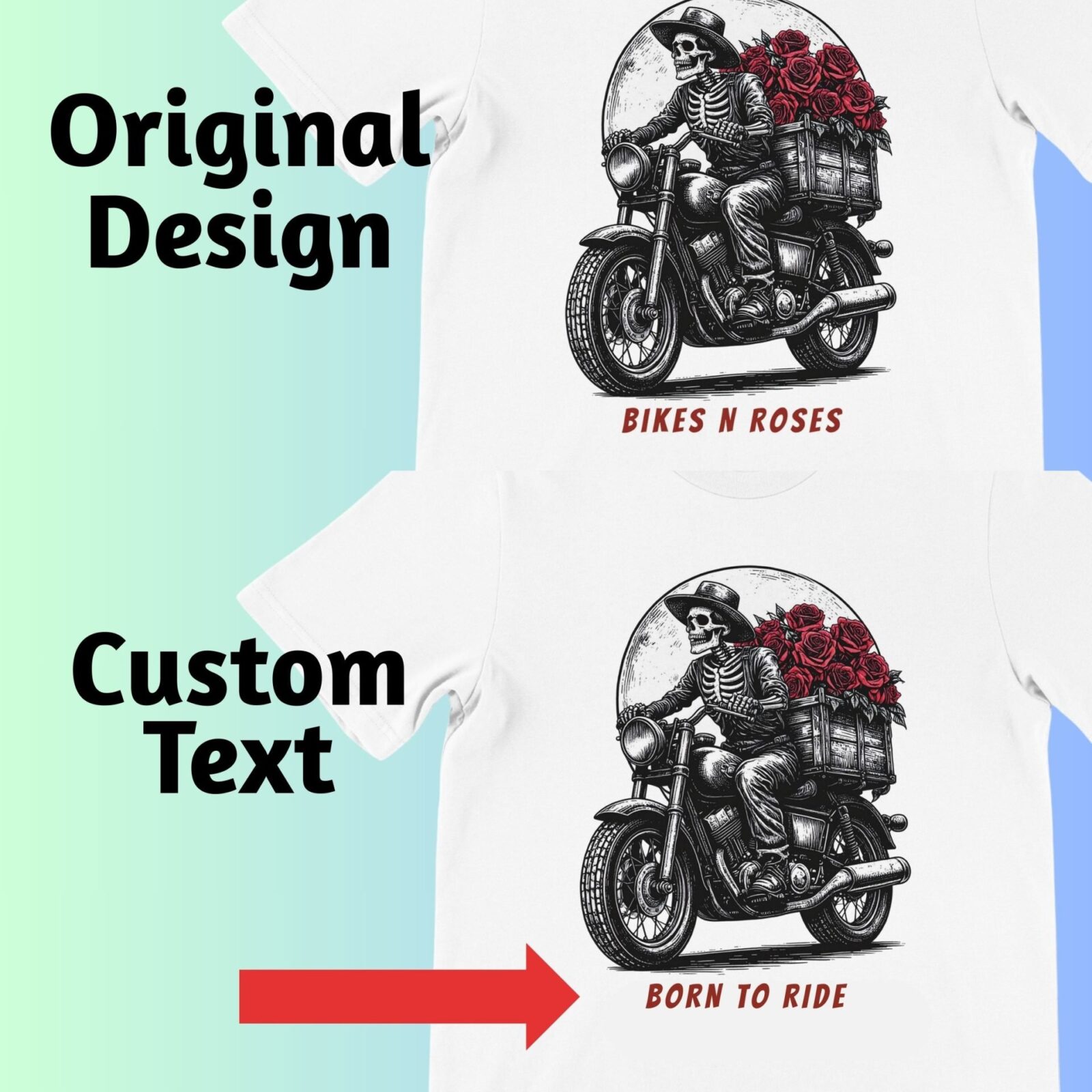 Bikes N Roses T-Shirt – Skeleton Biker & Red Roses Tee – Personalize It