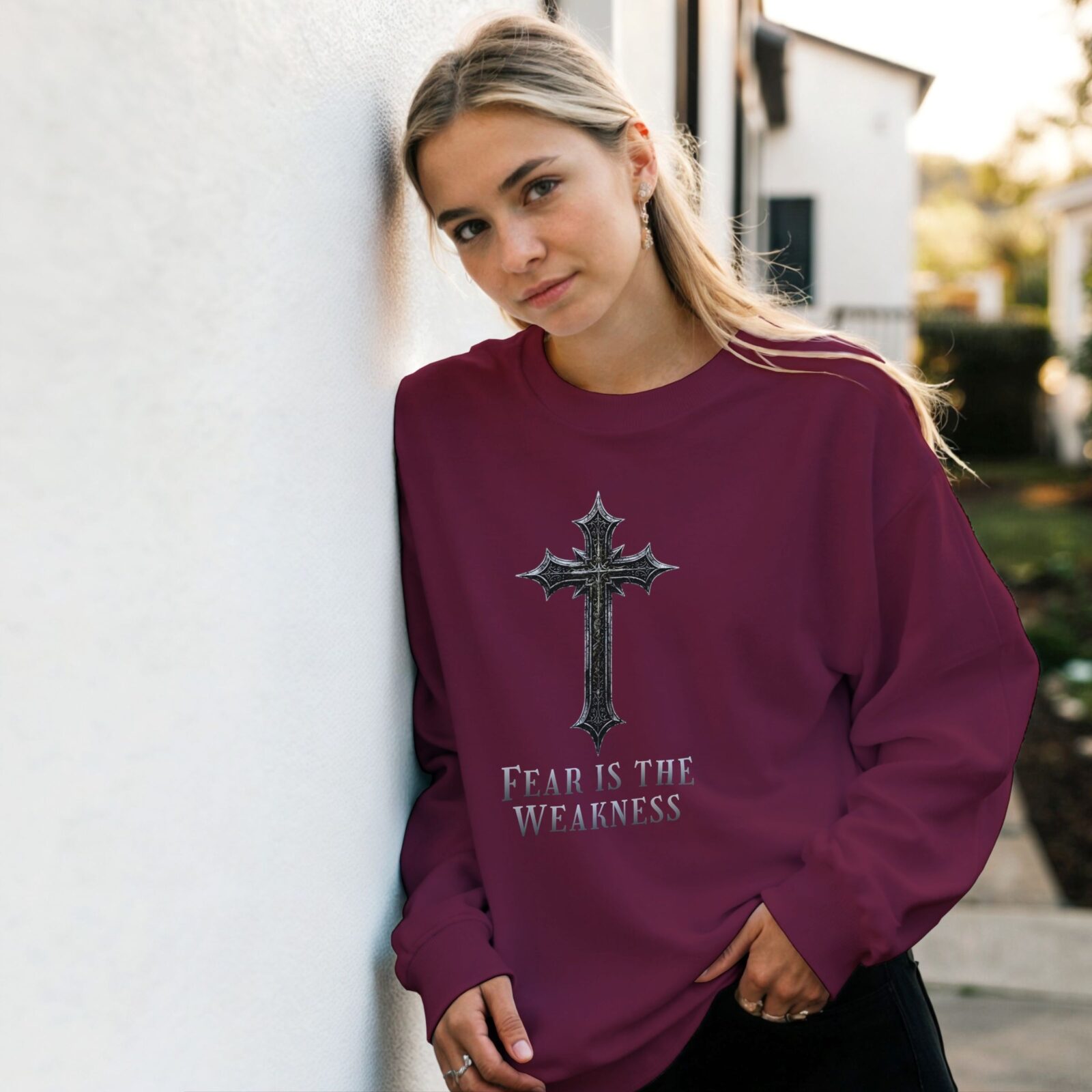 Christian Sweatshirt – Fear Is the Weakness Faith Cross Sweatshirt