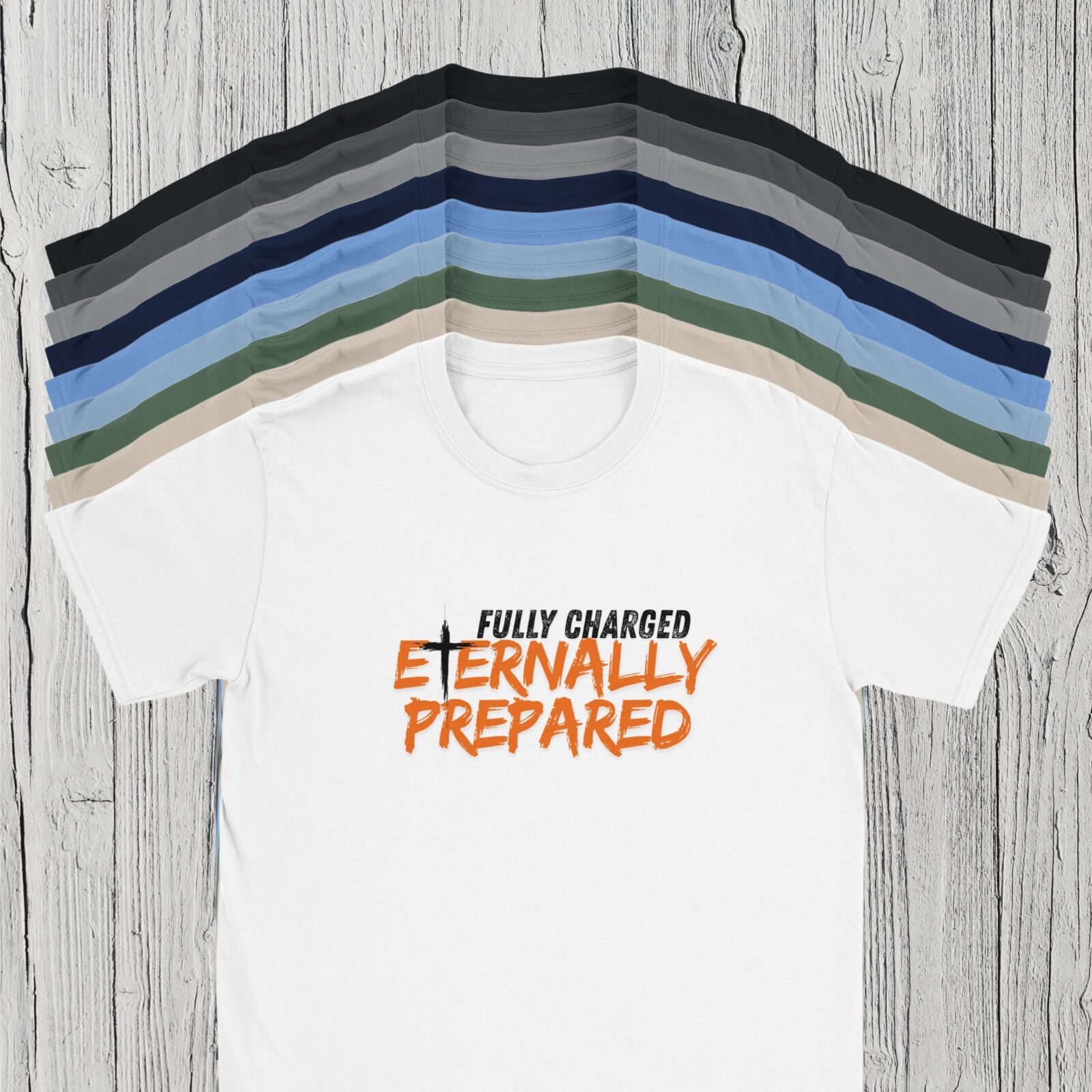 This Christian t-shirt featuring “Fully Charged, Eternally Prepared” is a bold statement of faith and spiritual readiness. Designed for men and women who value modern Christian apparel, this faith-based unisex tee combines softness, durability, and clean design.