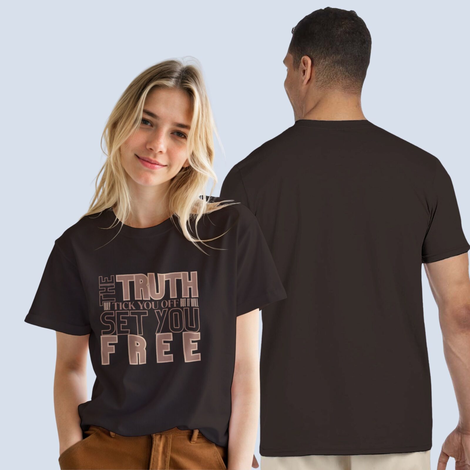 Share a message of faith, honesty, and biblical truth with this Christian unisex t-shirt featuring the bold statement: “The Truth may tick you off, but It Will Set You Free.” Inspired by the timeless message of Scripture, this shirt combines meaningful expression with everyday comfort.
