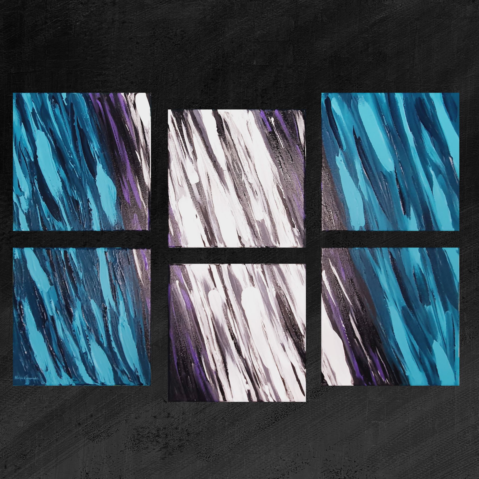 Embark on a visual journey with “Confusing Bliss,” an extraordinary original abstract acrylic painting by Nanda. This captivating artwork is presented as a six-panel set, with each square panel meticulously painted at 8″ x 8″. Designed for dynamic display, the full artwork creates an impactful statement approximately 18″ tall by 28″ wide when arranged with thoughtful spacing. Its modular nature allows for custom layouts.