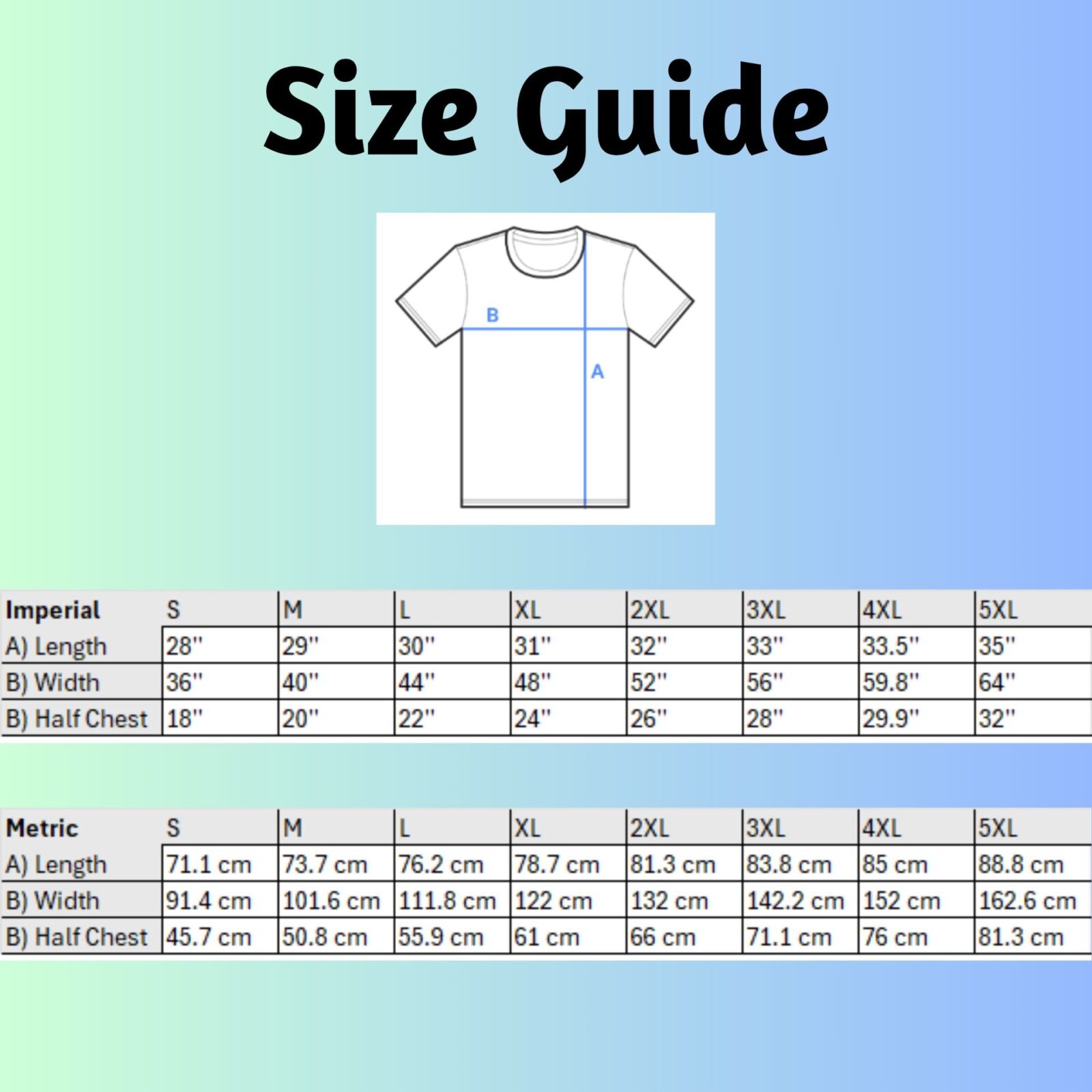 | Size | S, M, L, XL, 2XL, 3XL, 4XL, 5XL |
