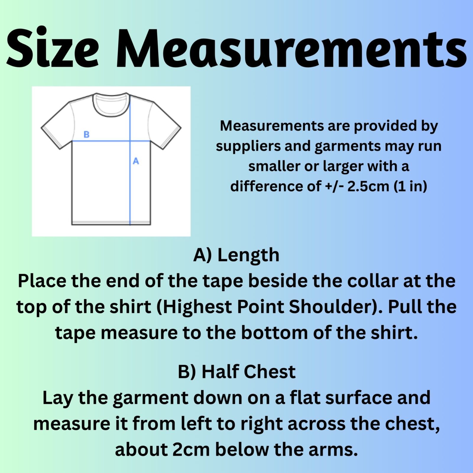 | Size | Length | Width | Half Chest |