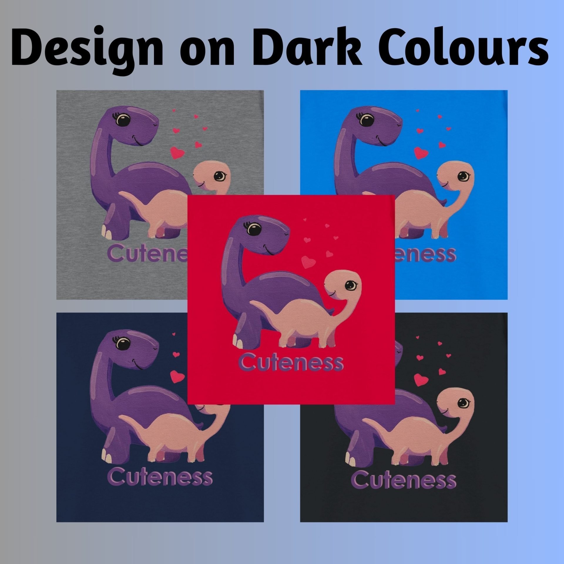 Get ready for prehistoric playtime with this adorable Cuteness mother and baby dinosaur toddler shirt! This delightful Dino Cuteness kids tee with hearts features a lovable mother and baby long-neck dinosaur, creating a sweet and heartwarming design that will make any little one smile.
