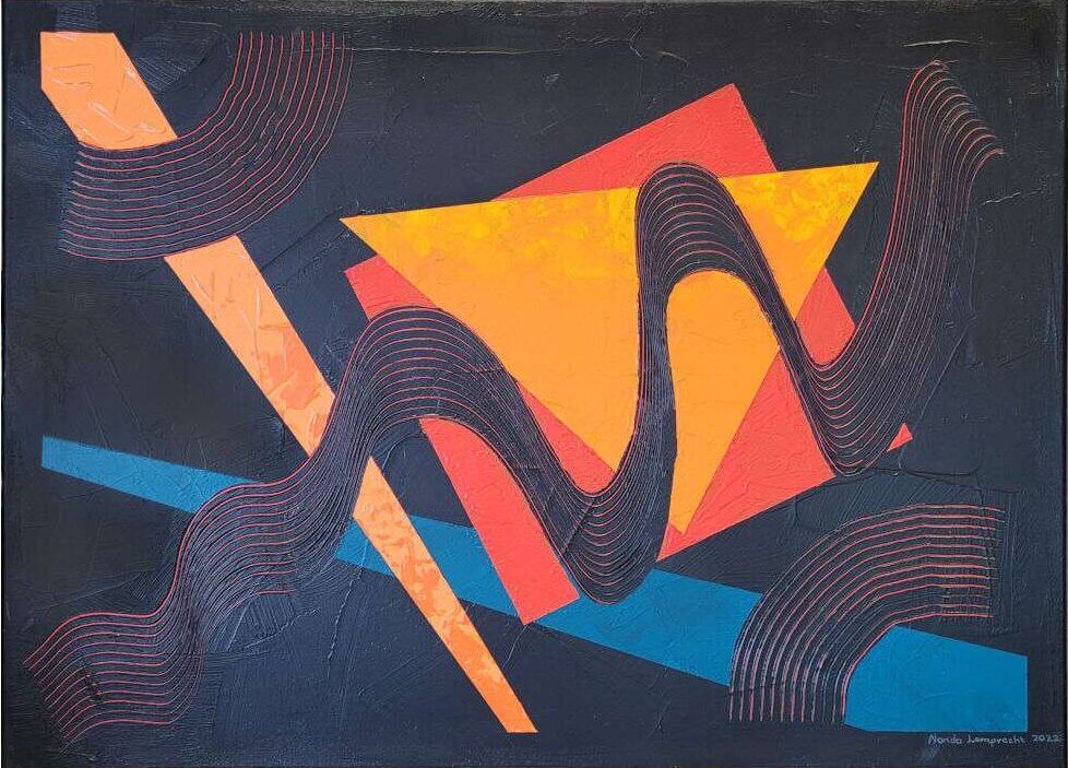 “Energizing” is an ideal statement piece for those seeking art that makes a bold impression. It’s perfectly suited for a 70s retro aesthetic, an industrial loft, a contemporary space, or a creative studio, bringing a unique blend of historical nod and modern dynamism. As a one-of-a-kind original artwork by Nanda, this piece offers a powerful infusion of color and texture, transforming any wall into a focal point of artistic energy.