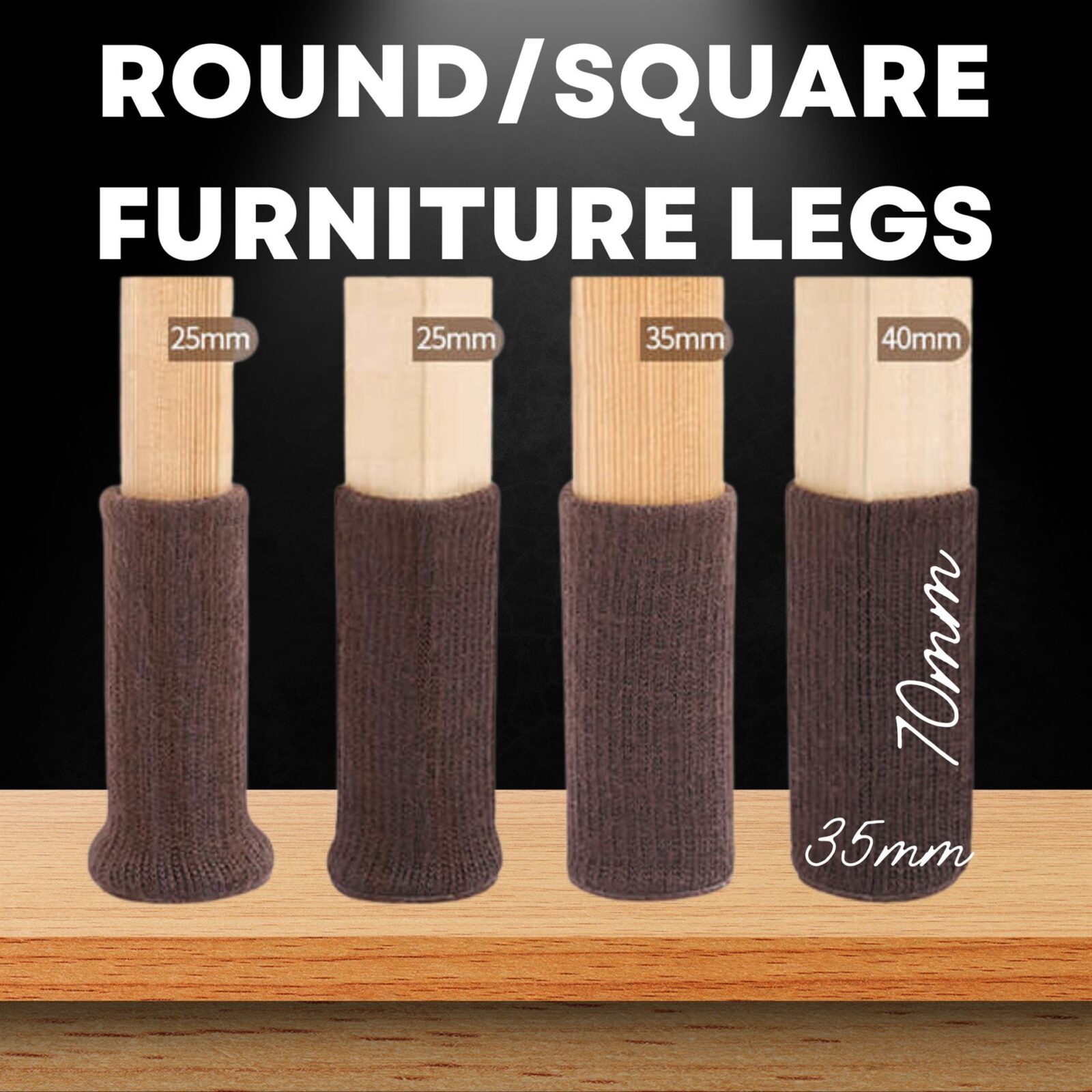 • Universal Fit: Accommodates round or square legs measuring 1″ to 1.5″ (25–40mm) in diameter.