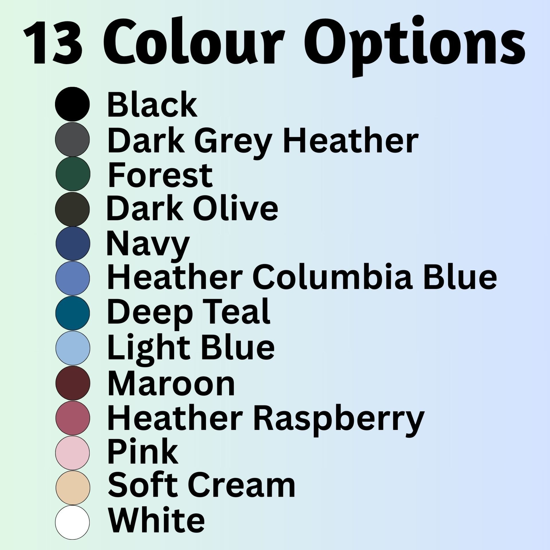 Color | White, Pink, Soft Cream, Light Blue, Columbia Blue, Heather Raspberry, Dark Grey Heather, Deep Teal, Maroon, Dark Olive, Navy, Forest, Black |