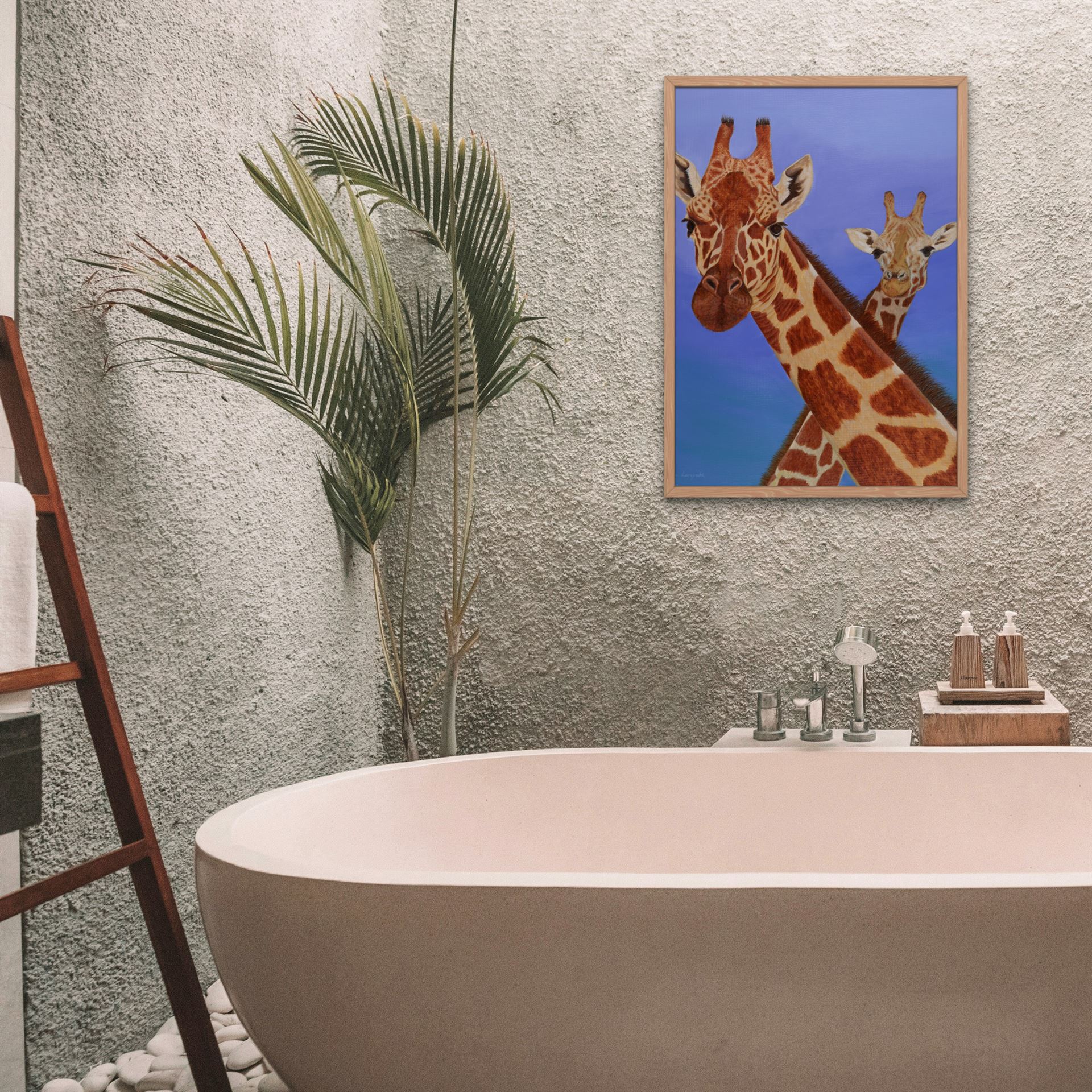 Giraffes symbolize grace, intuition, and community, making this painting not just an aesthetically pleasing piece, but one with profound meaning. “High Society” is the perfect centerpiece for a living room, a peaceful addition to a nursery, or a sophisticated statement in an office or study, inviting tranquility and natural elegance into any space.