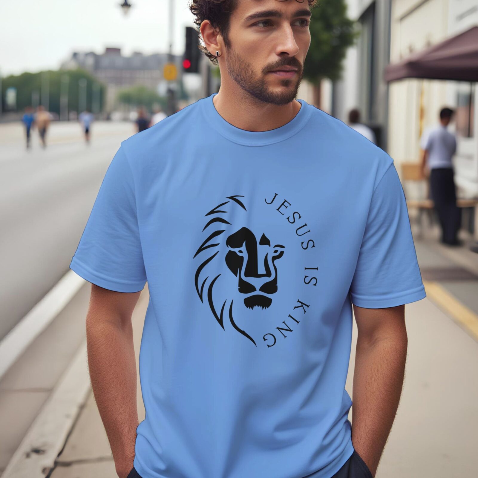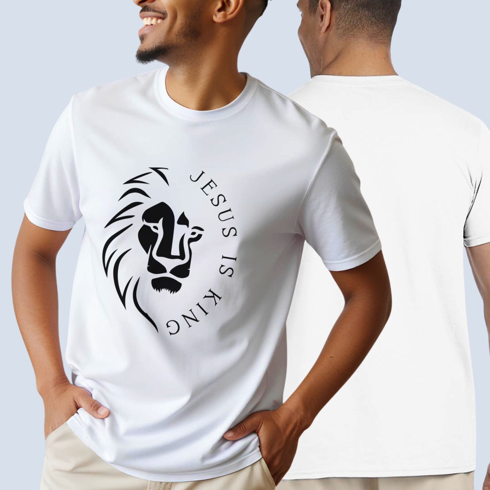 Make a bold statement of faith with this Christian t-shirt featuring a powerful lion design and the declaration “Jesus is King.” This striking Jesus shirt symbolizes strength, authority, and unwavering belief – perfect for everyday wear or meaningful gifting.