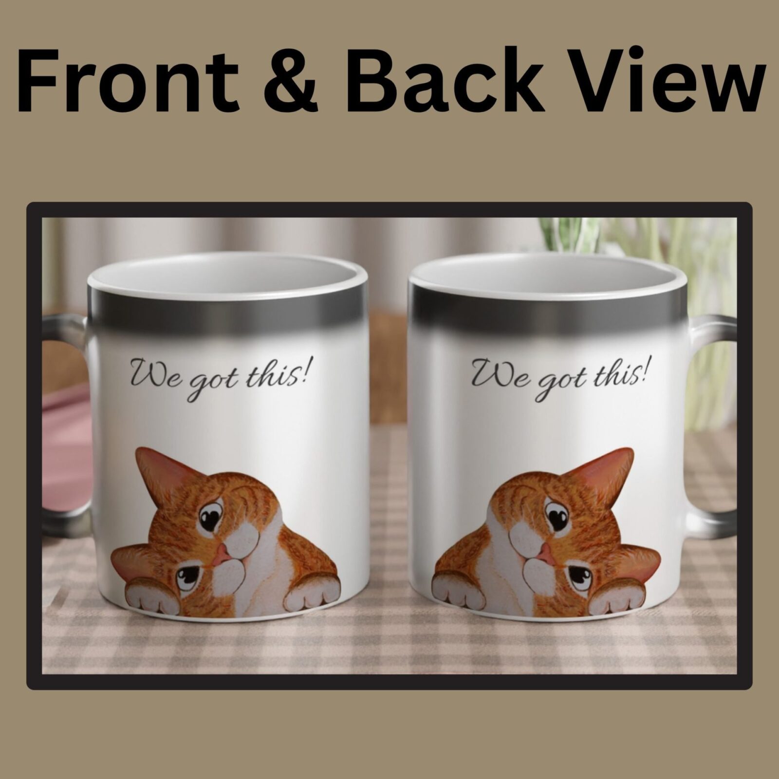 Magic Colour Changing Mug with Cat Print | Personalized 11oz Heat Reveal Coffee Cup Gift with Custom Text and Cute Ginger Kitty Cat Design