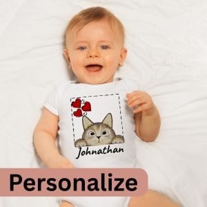 Whether you’re prepping for a baby shower, creating a memorable new baby gift, or choosing a standout item for your registry, this baby bodysuit is designed with love, comfort, and cat-inspired charm.