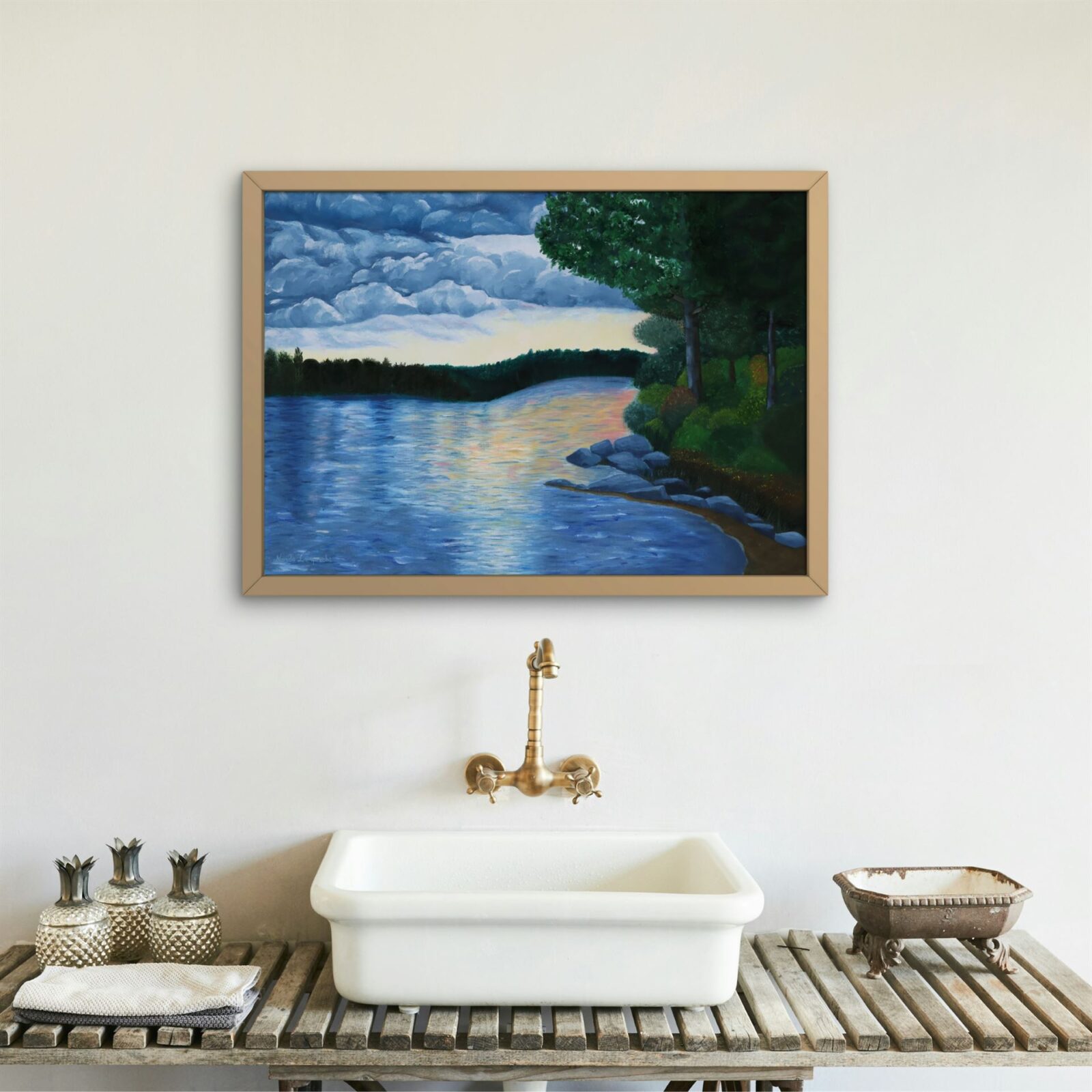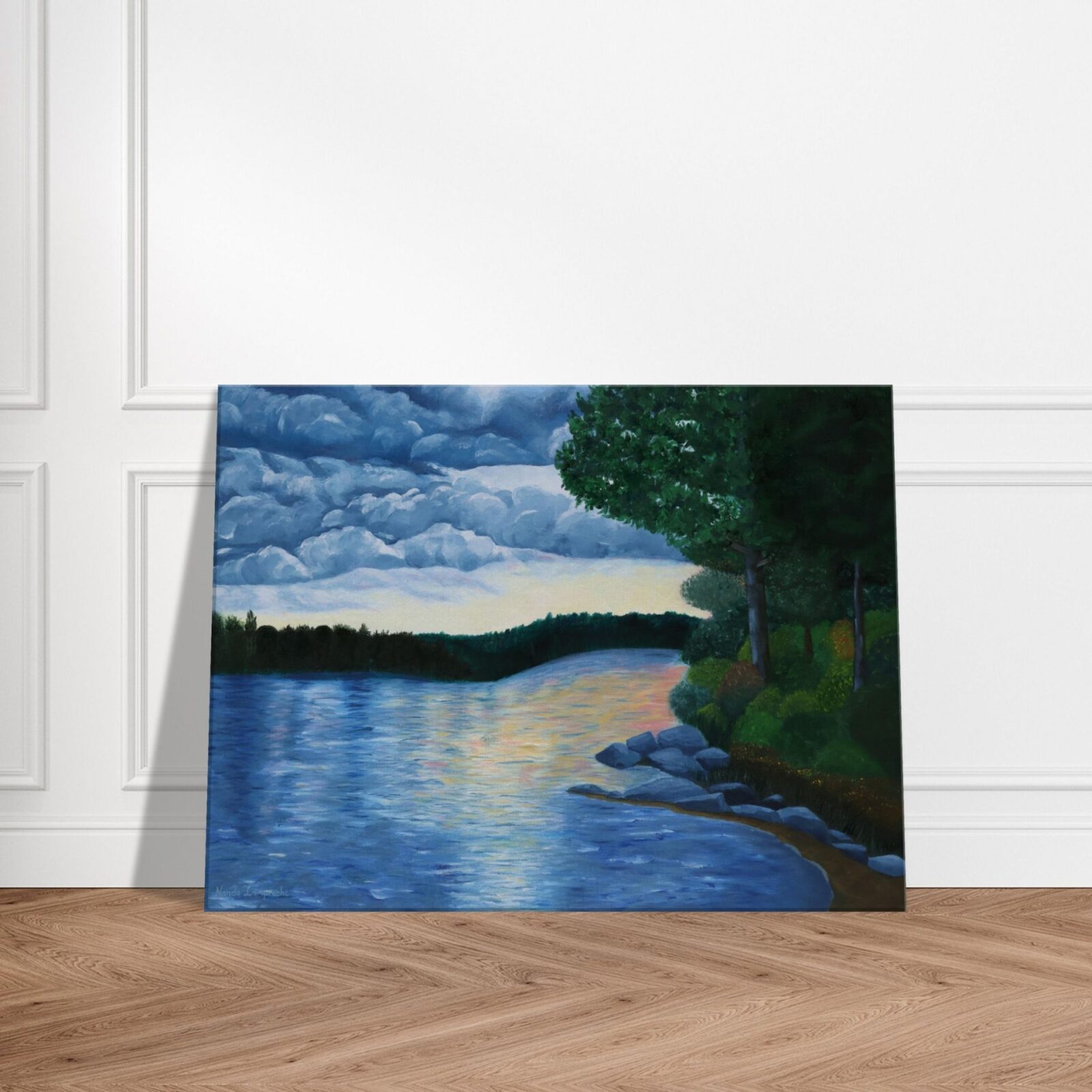 This painting evokes the profound “silence before the storm”, a moment of quiet awe and powerful tension in nature. It’s an ideal piece for those who appreciate Canadian landscapes, stormy skies, and the dramatic beauty of the wilderness. As a one-of-a-kind original artwork, “Silence Before the Storm” by Nanda offers a unique and evocative statement piece for your home or office, perfect for collectors of nature art or anyone looking to infuse their space with the majestic spirit of Algonquin.